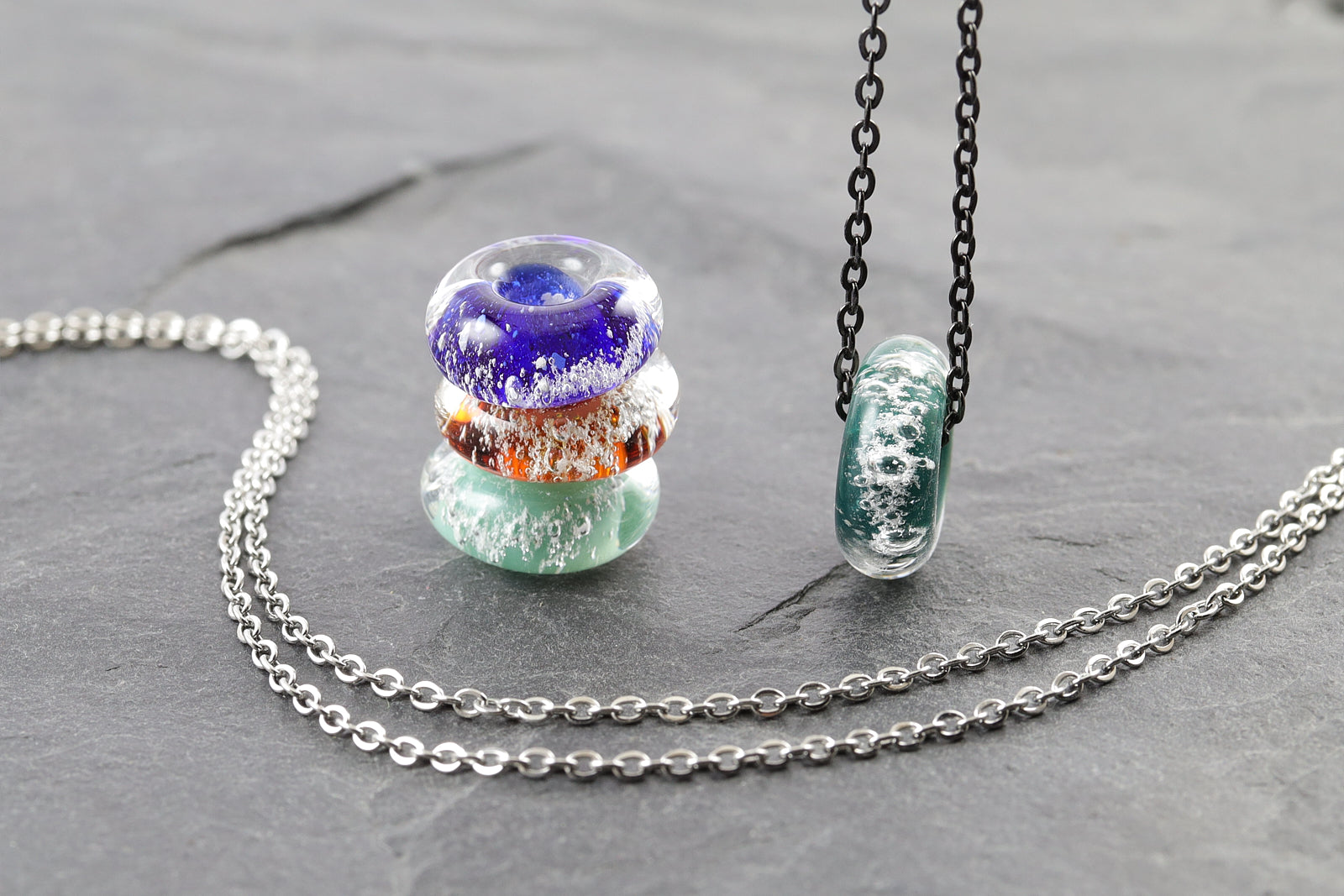 Mini Gedenkschmuck aus Borosilikatglas mit Tierasche – Kette als Andenken an verstorbene Haustiere